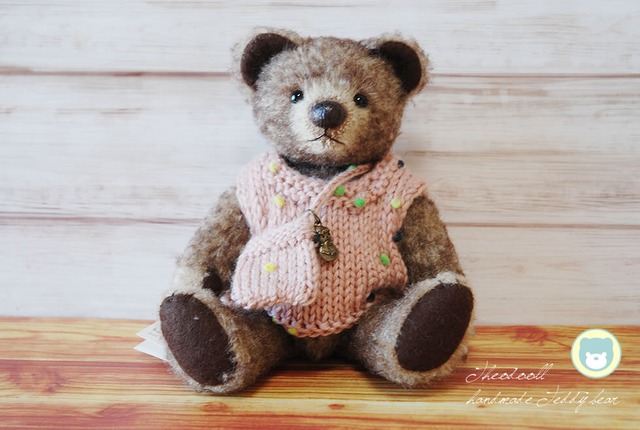 身長 約26cm 体重 320g 素材 シュルテ社製モヘア・ウールフェルト(ドイツ)・グラスアイ(ドイツ)・ハードボード5ジョイント・化繊綿・グラスビーズ・刺繍糸・毛糸 附属品 オリジナル手編みのセーター オリジナル手編みのポシェット イヌのペンダント 注意点 ニット製品は丁寧に扱ってください。 特にセーターの脱ぎ着時は鼻先などに注意してください。 POINT シュルテ社の光沢のあるモヘアで制作したクマさんらしいお顔のベアです。 お話をよーく聞いてくれそうな優しい頼もしい仔です。 色とりどりの小さなポンポンがかわいい毛糸で編んだセーターとポシェットを♪ ポシェットには雪だるまのチャーム、首にはイヌのペンダントをしています。