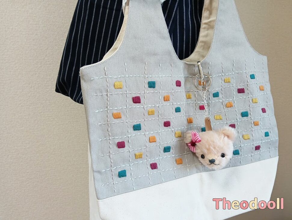 ふんわりとした色合いと穏やかな雰囲気が、バッグにやさしいアクセントを添えます。