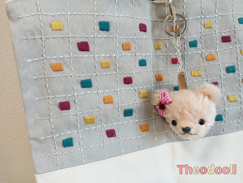 お出かけのたびに、そっと寄り添ってくれる小さなクマさんです。