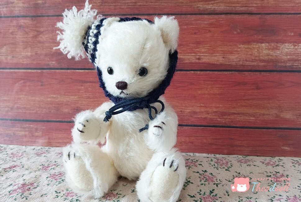 モヘア、グラスアイ、化繊綿、ウールフェルト、ハードボードジョイント