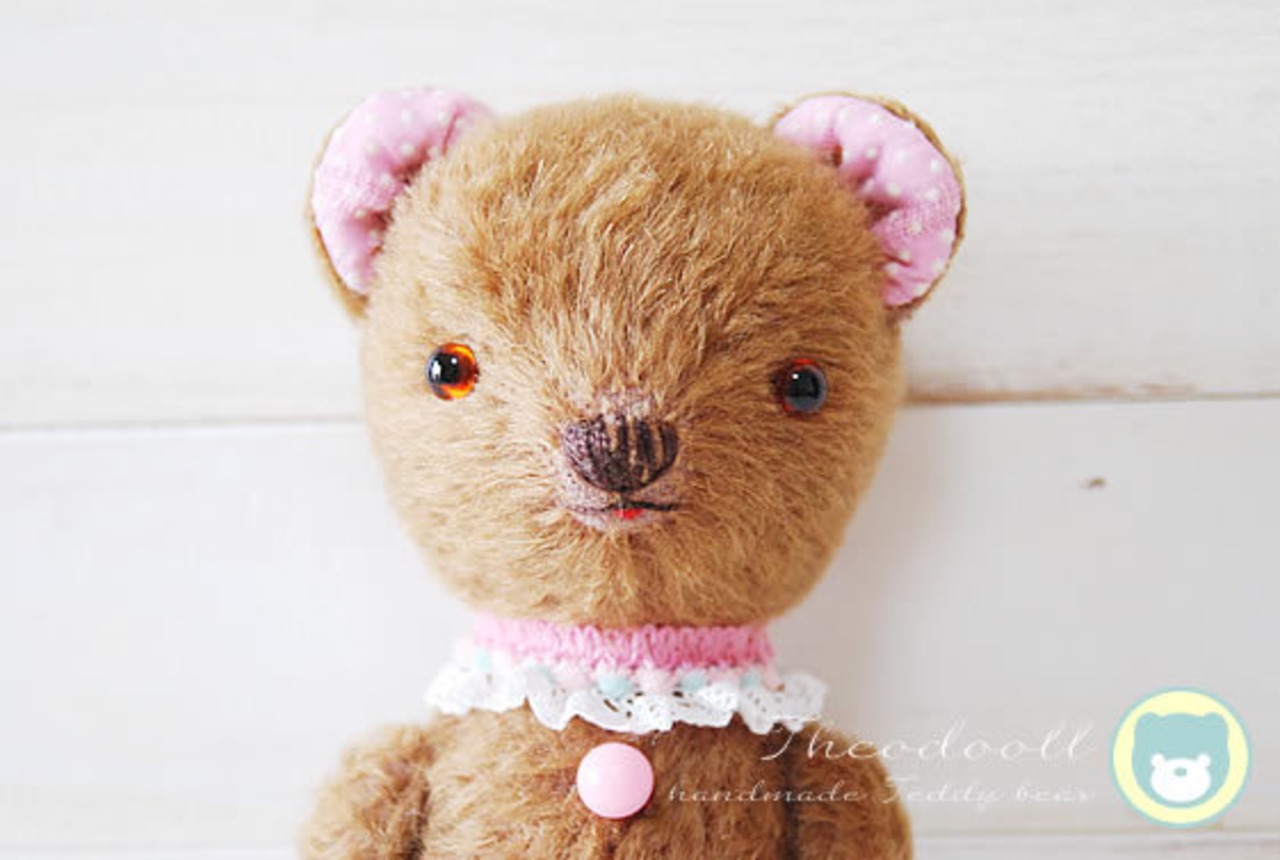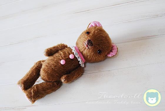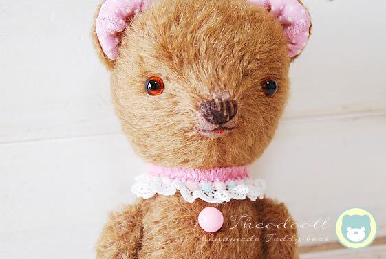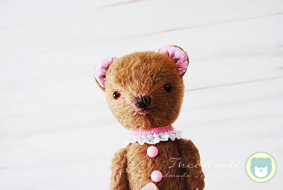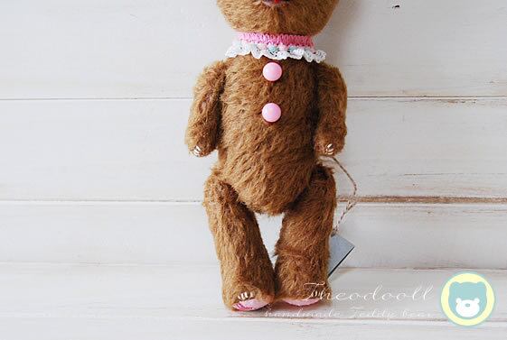 ディストレスモヘア、グラスアイ、ハードボード5ジョイント、アンティークボタン、アンティークファブリック、綿