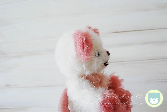 いちごみるくをイメージしたピンクと白のくまぽんです。足裏はハートの肉球です。