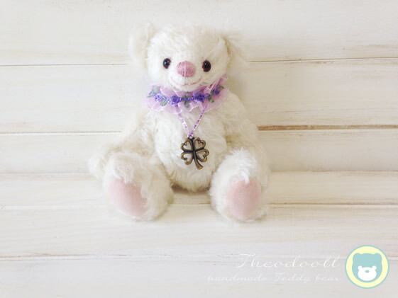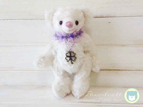 ジャパンミルクミニチュアファー、グラスアイ(アンバー)、化繊わた、グラスビーズ、クローバーチャーム、フルジョイント
