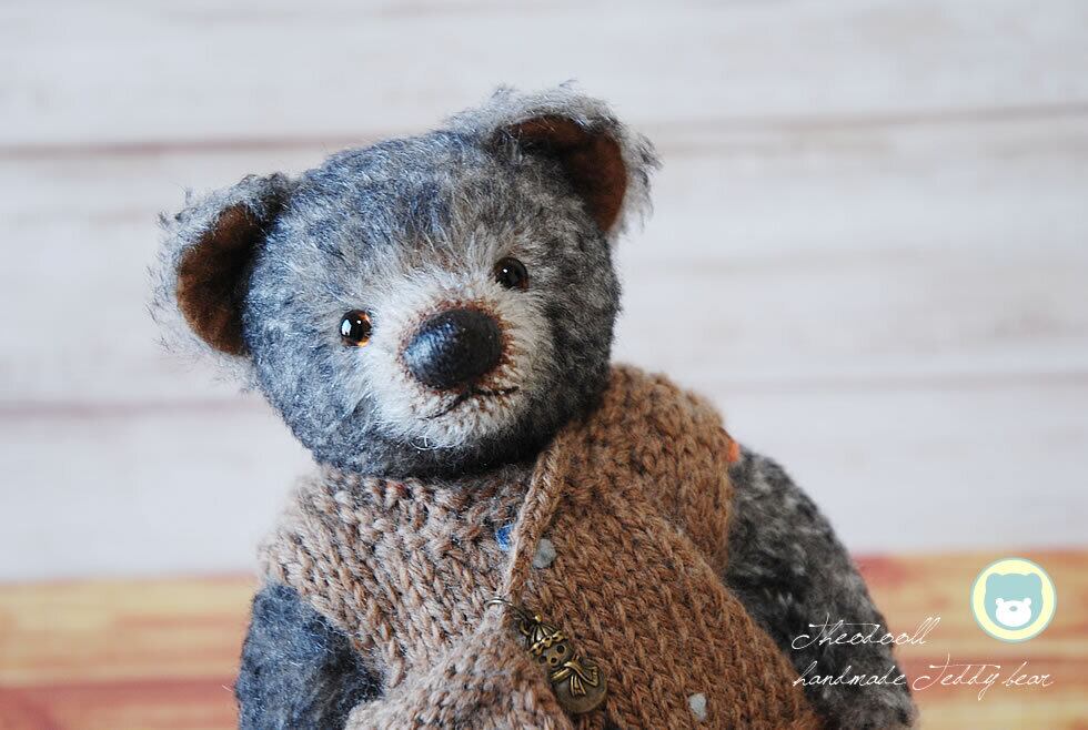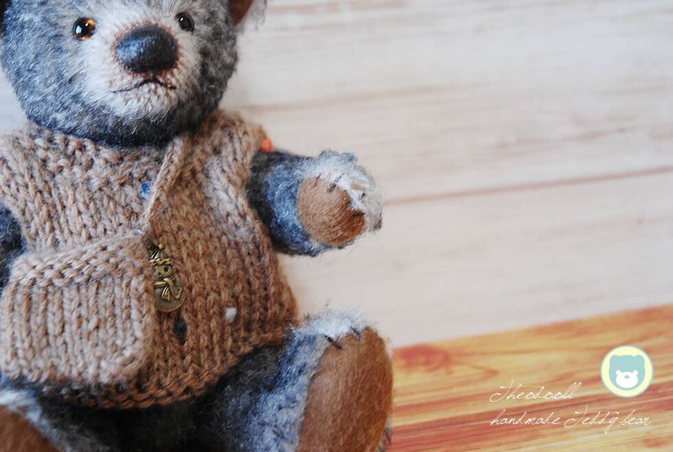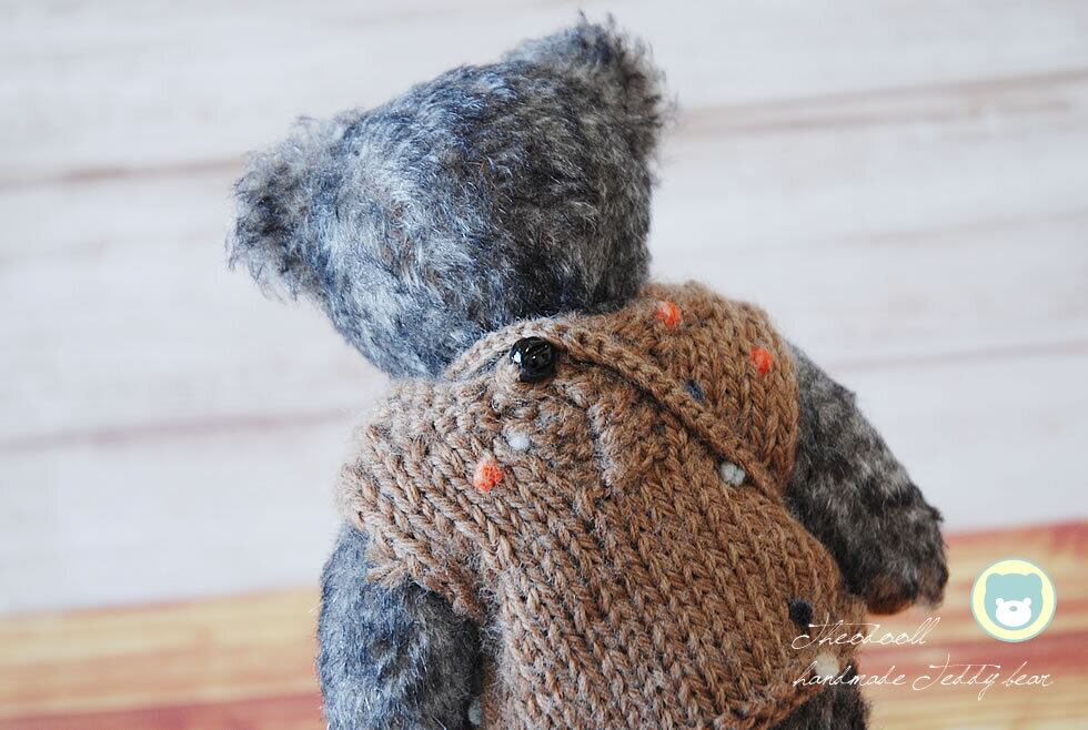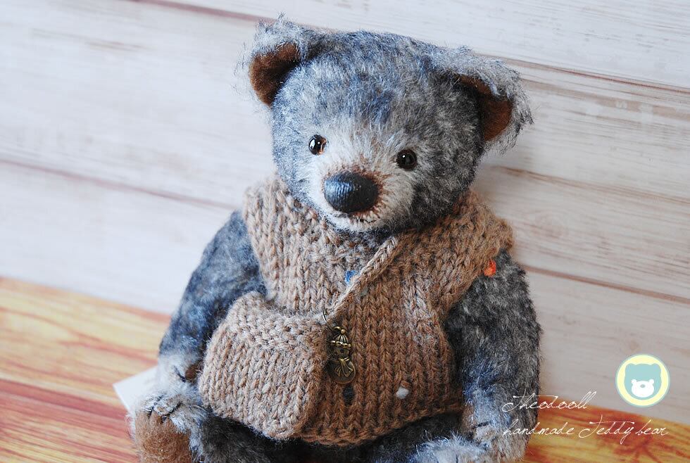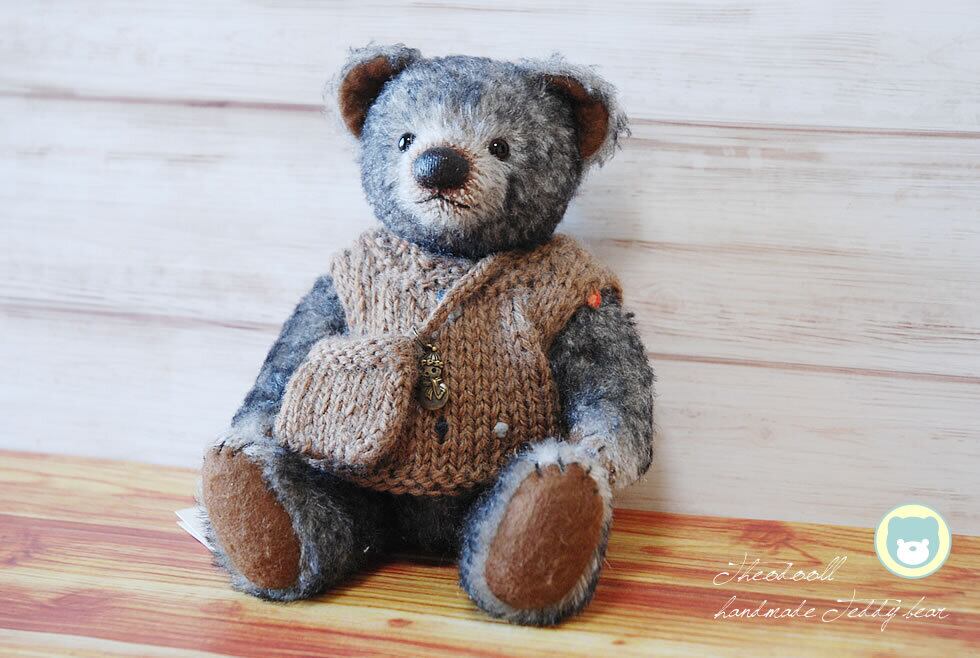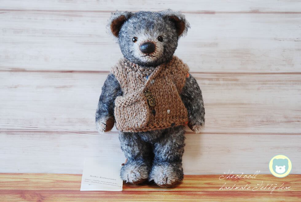 シュルテ社製モヘア・ウールフェルト(ドイツ)・グラスアイ(ドイツ)・ハードボード5ジョイント・化繊綿・グラスビーズ・刺繍糸・毛糸