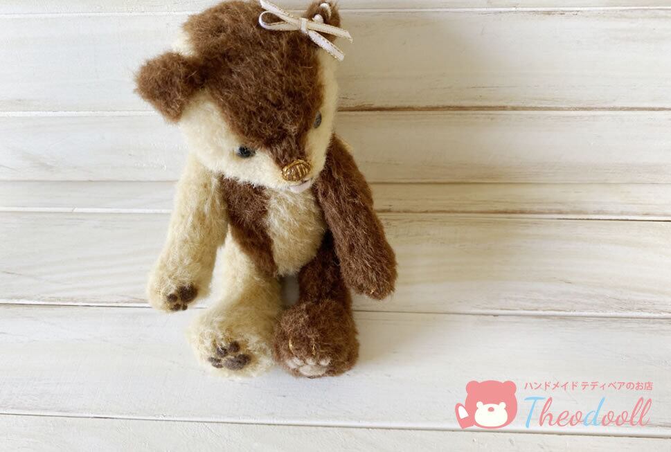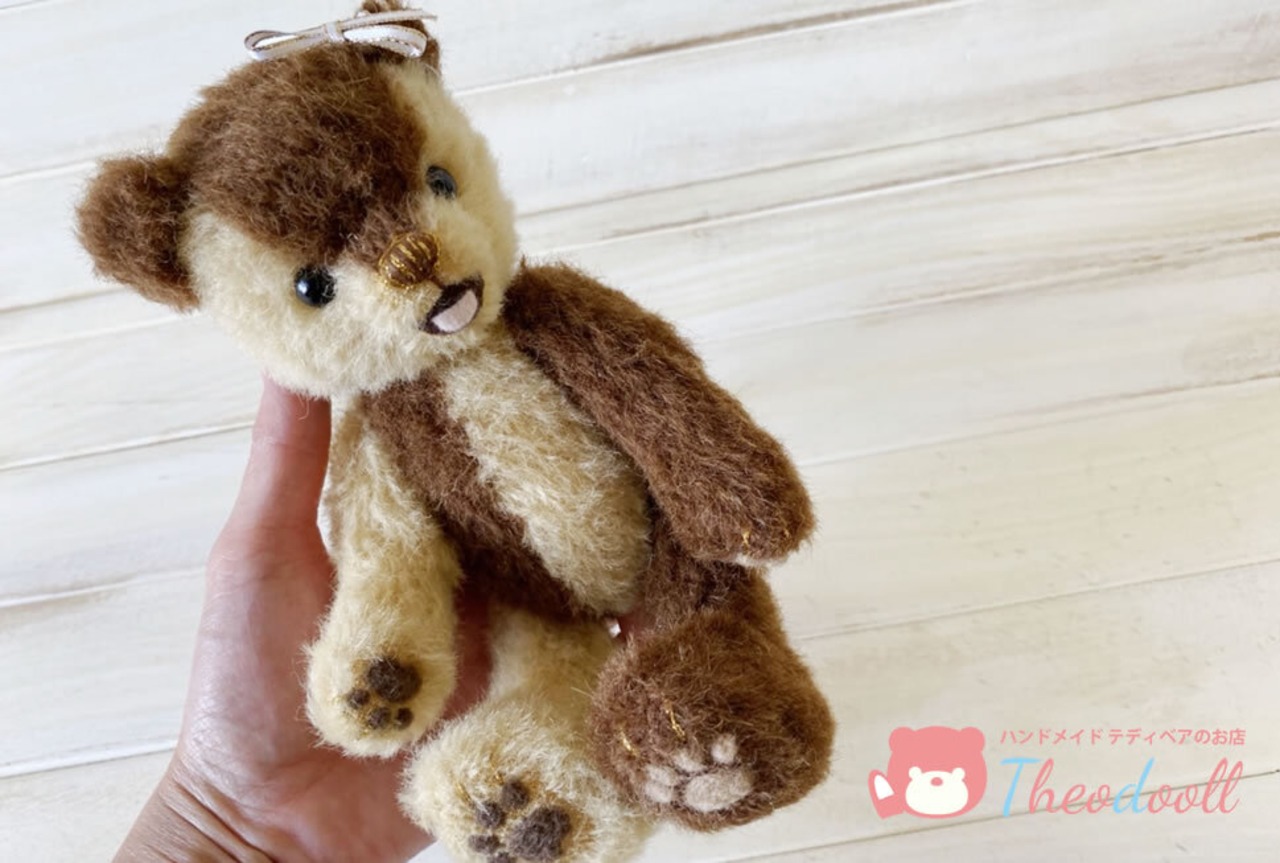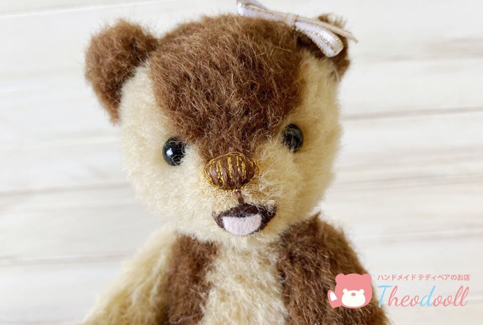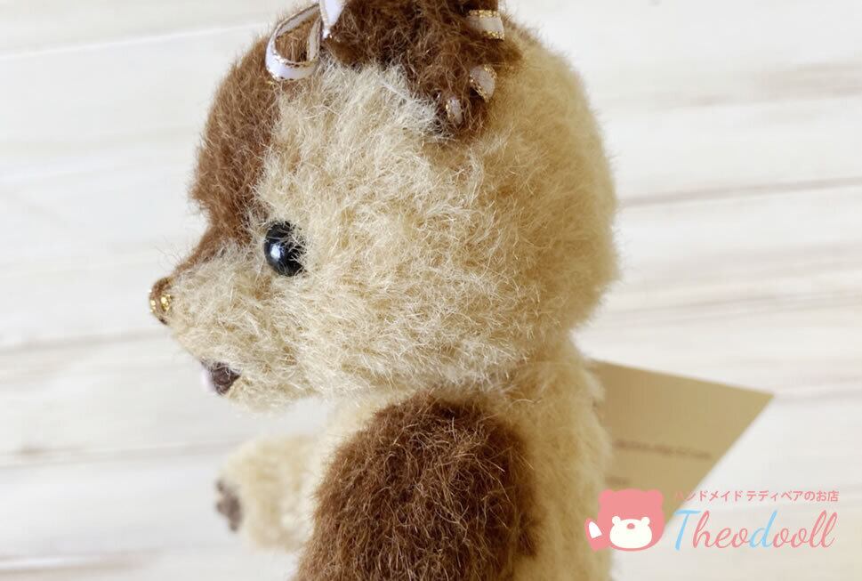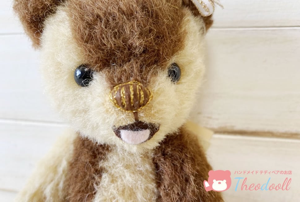 アルパカを用いたあたたかな雰囲気のくまぽんです。お鼻と爪のゴールドの刺繡がポイントです。