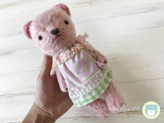 ディストレスモヘア、グラスアイ、ハードボードジョイント、フランスレース、布、綿