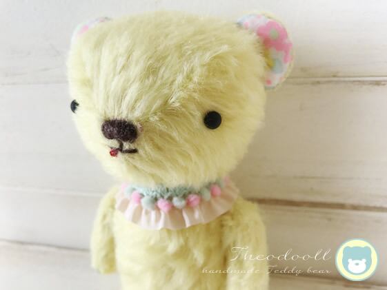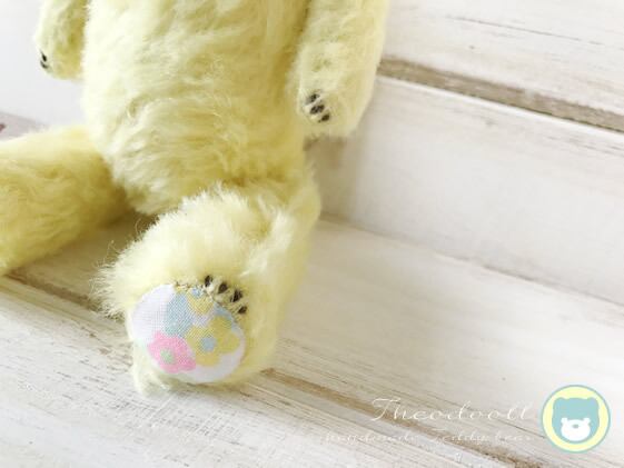 ディストレスモヘア、グラスアイ、5ジョイント(ハードボードジョイント)、レース、布、綿